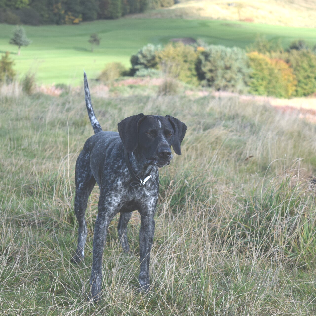 This magnificent German Pointer, Marley, was always full of surprises! He'd absolutely love to leap onto half-fallen tree stumps and run up them, then bravely leap off, just for the sheer joy of it. Every walk with him was an adventure! We cherish these unique personalities during our Dogwalking Dave adventures.